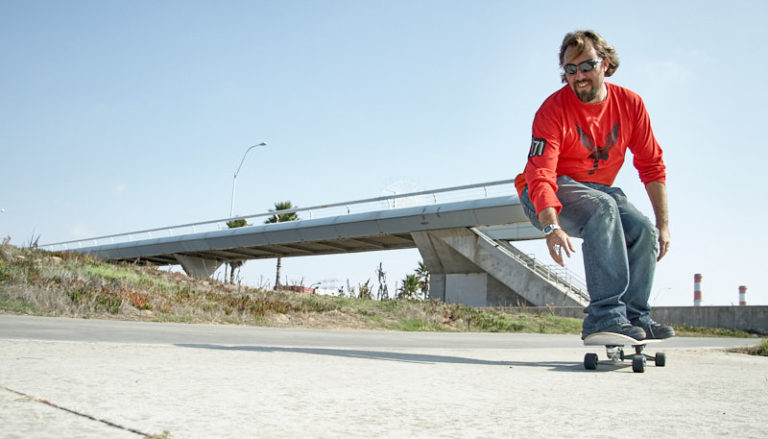 Sean Gray testing out a Carver Skateboard. -